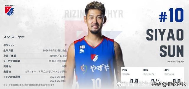 另外一个前CBA榜眼孙思尧上个赛季未能获得茨城机器人续约后,他选择加盟B2福冈新锐,身处更低一个级别的联赛,他同样未能获得太多的机会。